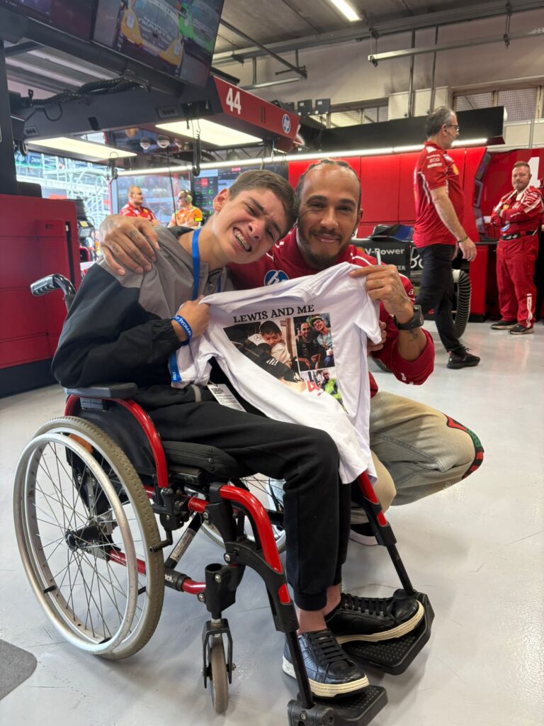Em 2025, o reencontro parecia improvável. Sem convite para o GP de São Paulo, Cadu já se conformava em acompanhar tudo “do setor S”, o sofá. Mas o destino, outra vez, tinha planos diferentes. Um convite de última hora o levou ao Autódromo de Interlagos, durante a visita ao pit lane, Angela Cullen, fisioterapeuta de Hamilton, o reconheceu e fez uma selfie. Poucos minutos depois, ela retornou acompanhada de Lewis.